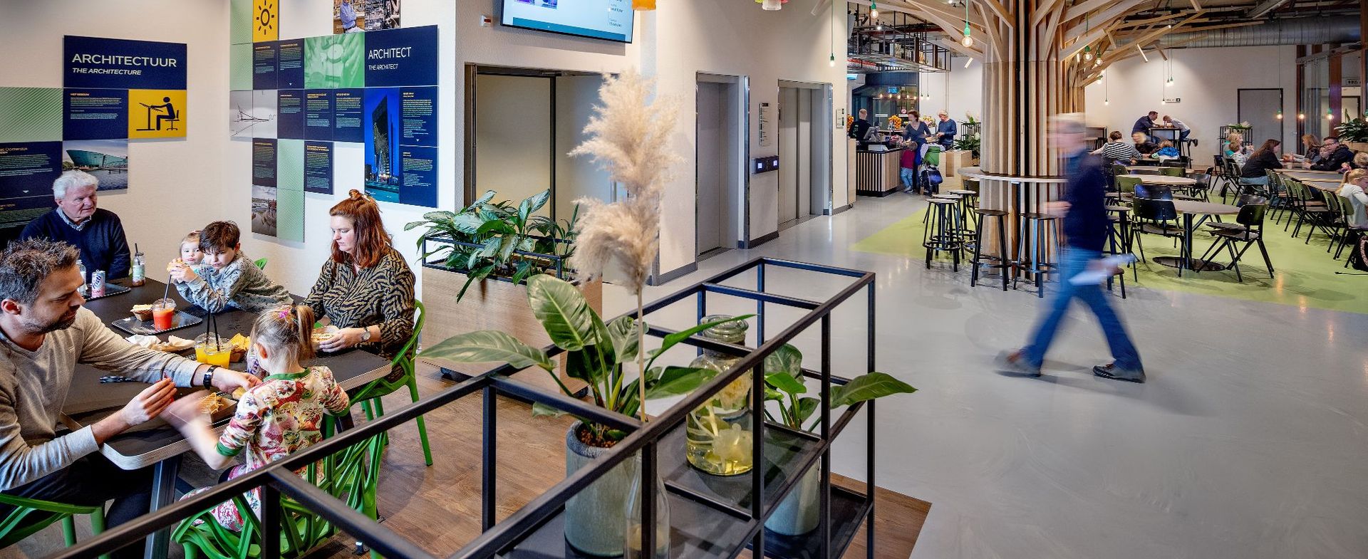 Benieuwd wat er op het menu staat? Er is een wisselend assortiment en het dagelijkse aanbod staat op de digitale schermen in het restaurant. Reserveren voor het restaurant is niet nodig, er is altijd wel een plekje vrij.