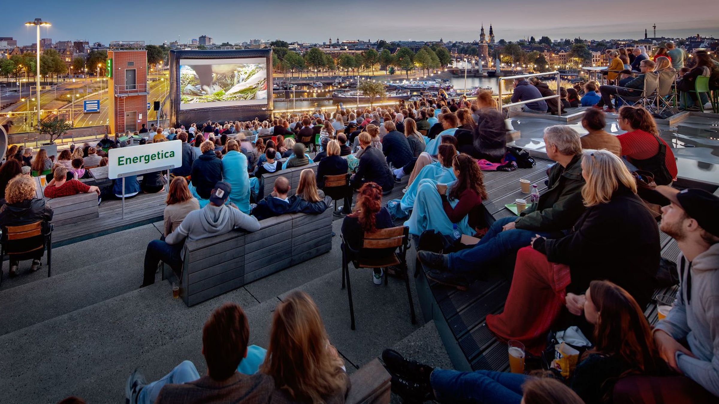 Tijdens de film zit je op de trappen van het dak, neem een kussentje mee voor extra comfort. Het restaurant en de bar zijn open voor een hapje en een drankje. Popcorn is inbegrepen bij je ticket.