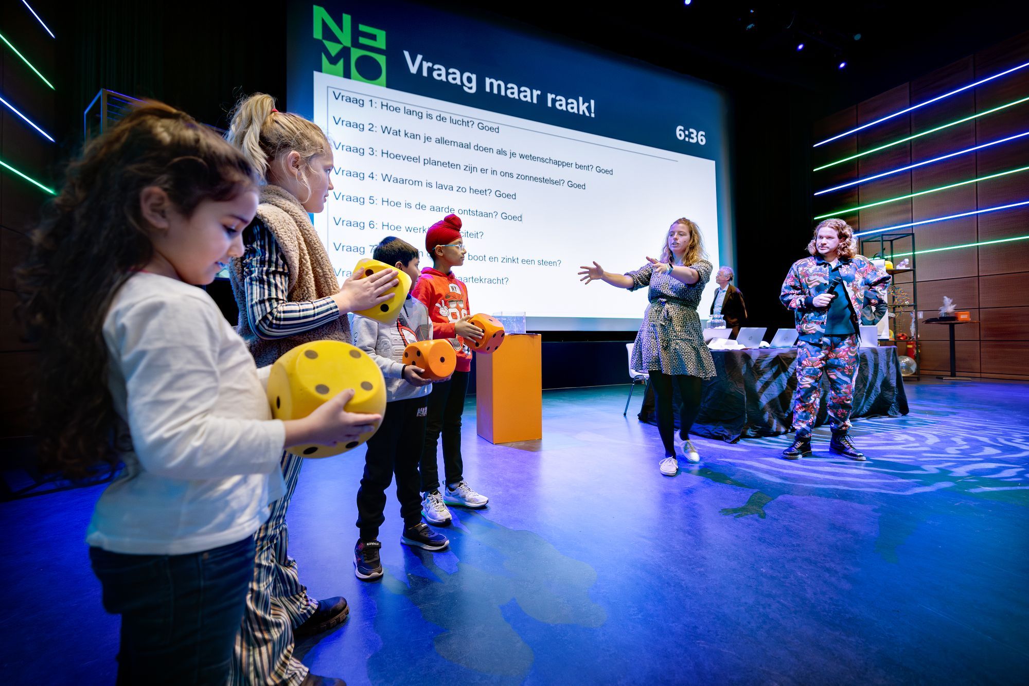 In een race tegen de klok beantwoorden wetenschappers allerlei vragen uit het publiek, met proefjes en demo's.