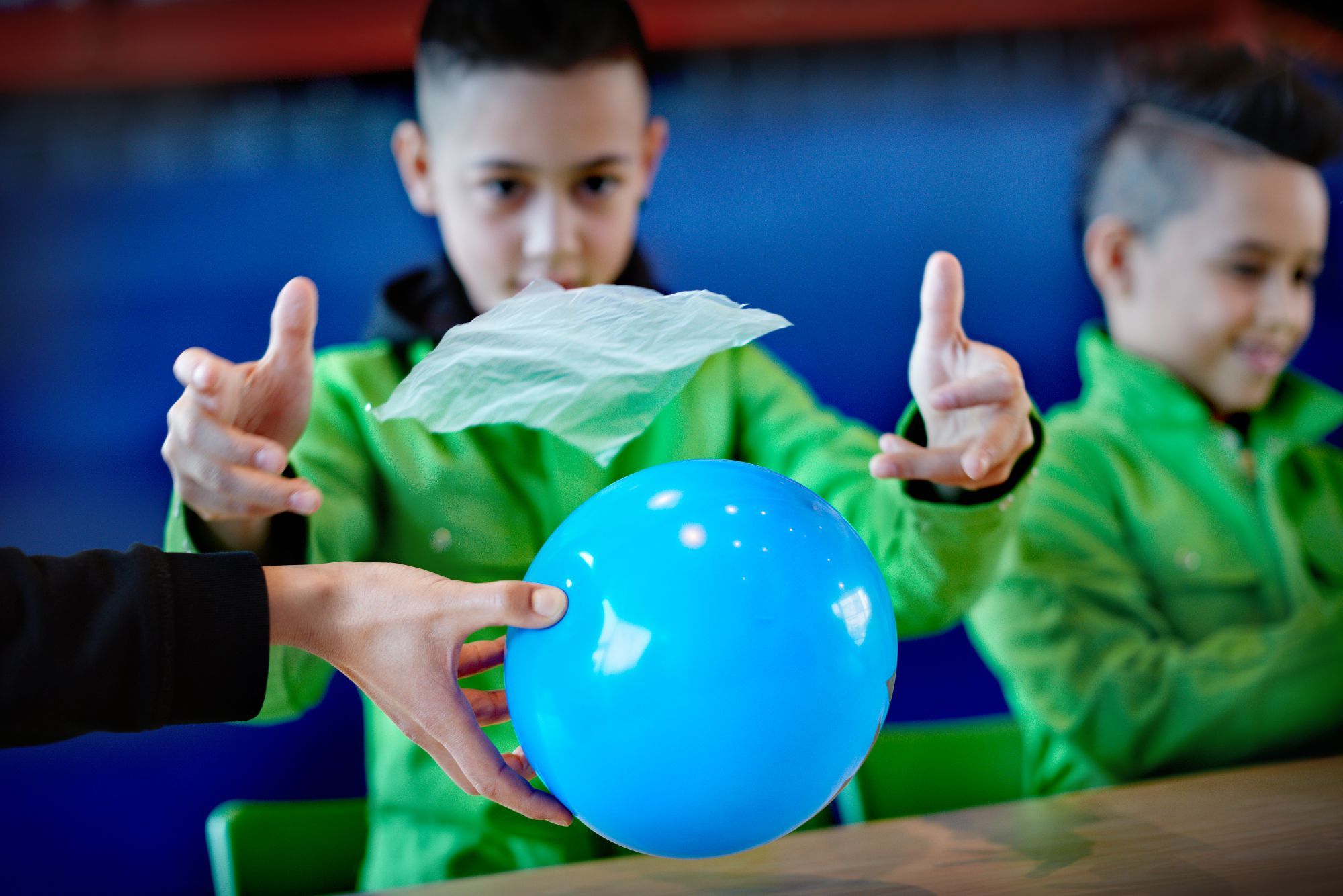 Een zeepbel is een dun laagje water gevangen tussen zeep en glycerine. De bel weerkaatst wit licht, dat alle kleuren van de regenboog bevat — precies wat je terugziet in de zeepbel. Met NEMO's superzeepsop maak je gigantische bellen, groot genoeg om zelf in te staan!