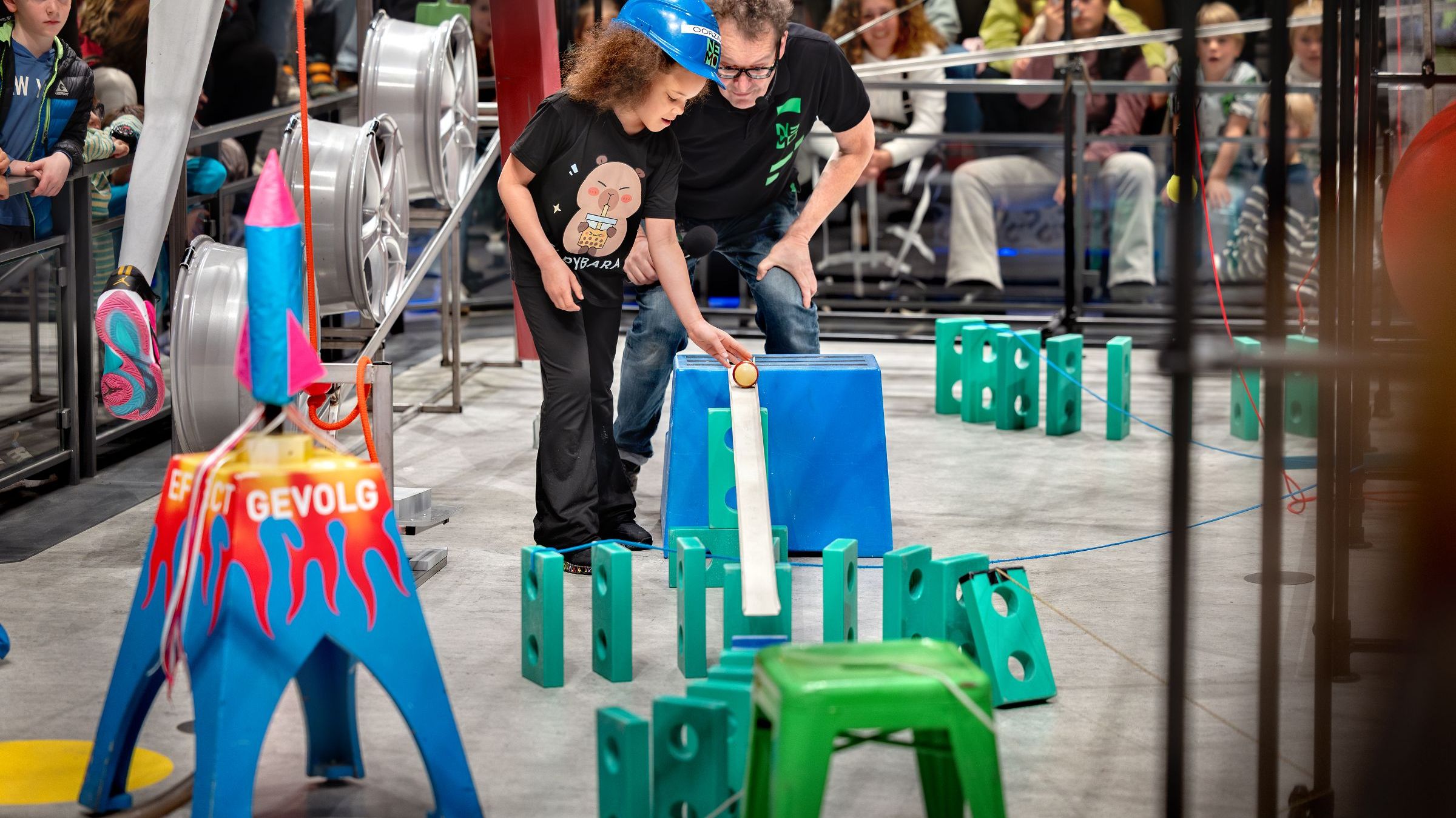 What makes an office chair roll? How can a mannequin play tennis? And how does one domino knock down the next? Welcome to the world of potential energy and kinetic energy. Discover action and reaction, cause and effect in the Chain Reaction.