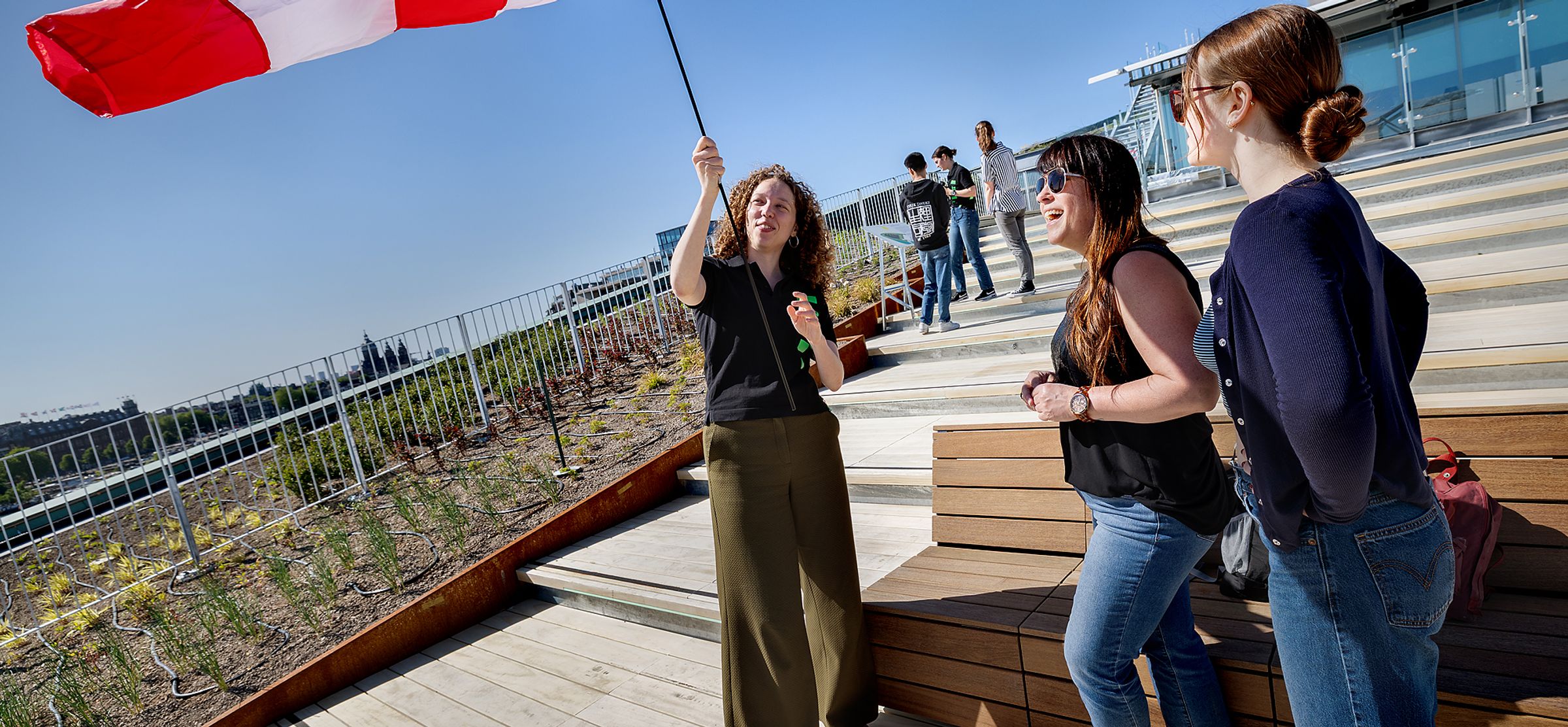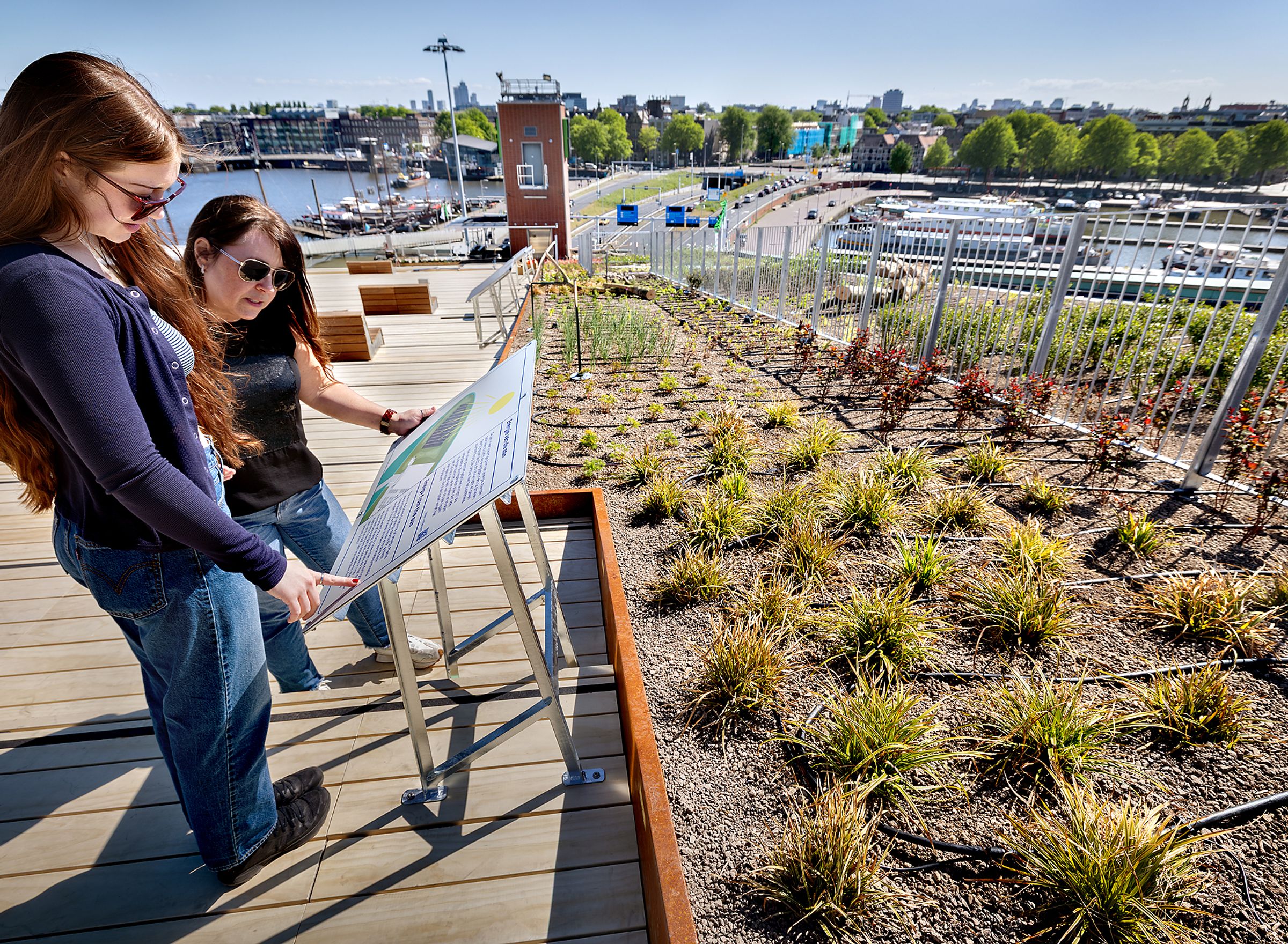 The rooftop square blends nature and technology. Discover the health benefits of green spaces for cities, study the clouds, measure air quality, spot different species of urban birds and learn how smart ideas are helping us to live more sustainably. The roof is designed to accommodate plants and animals in the heart of a European capital.