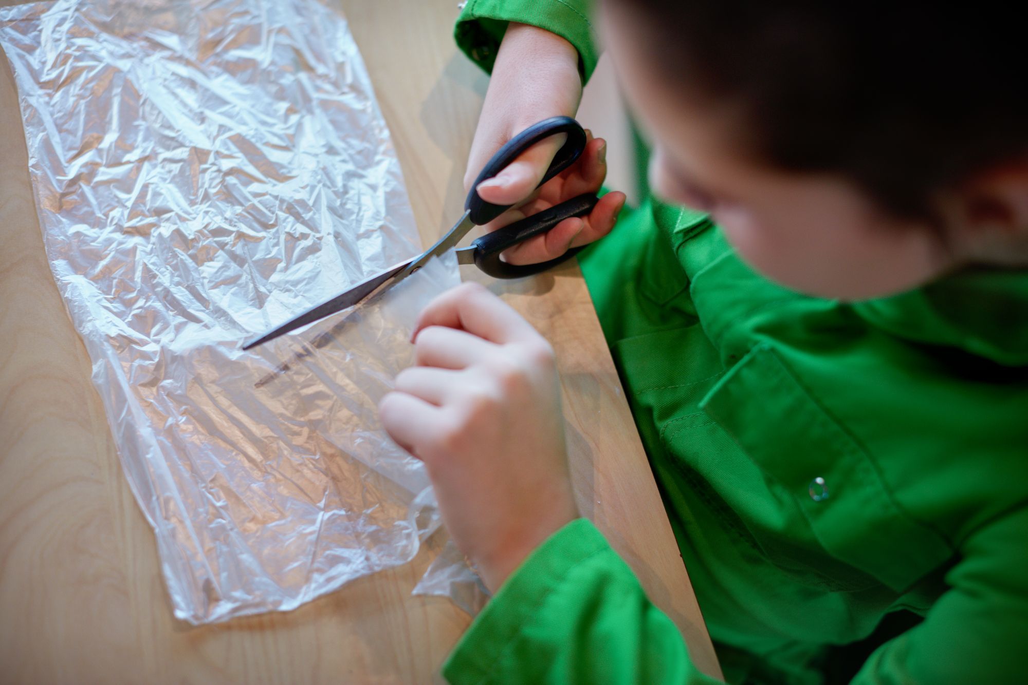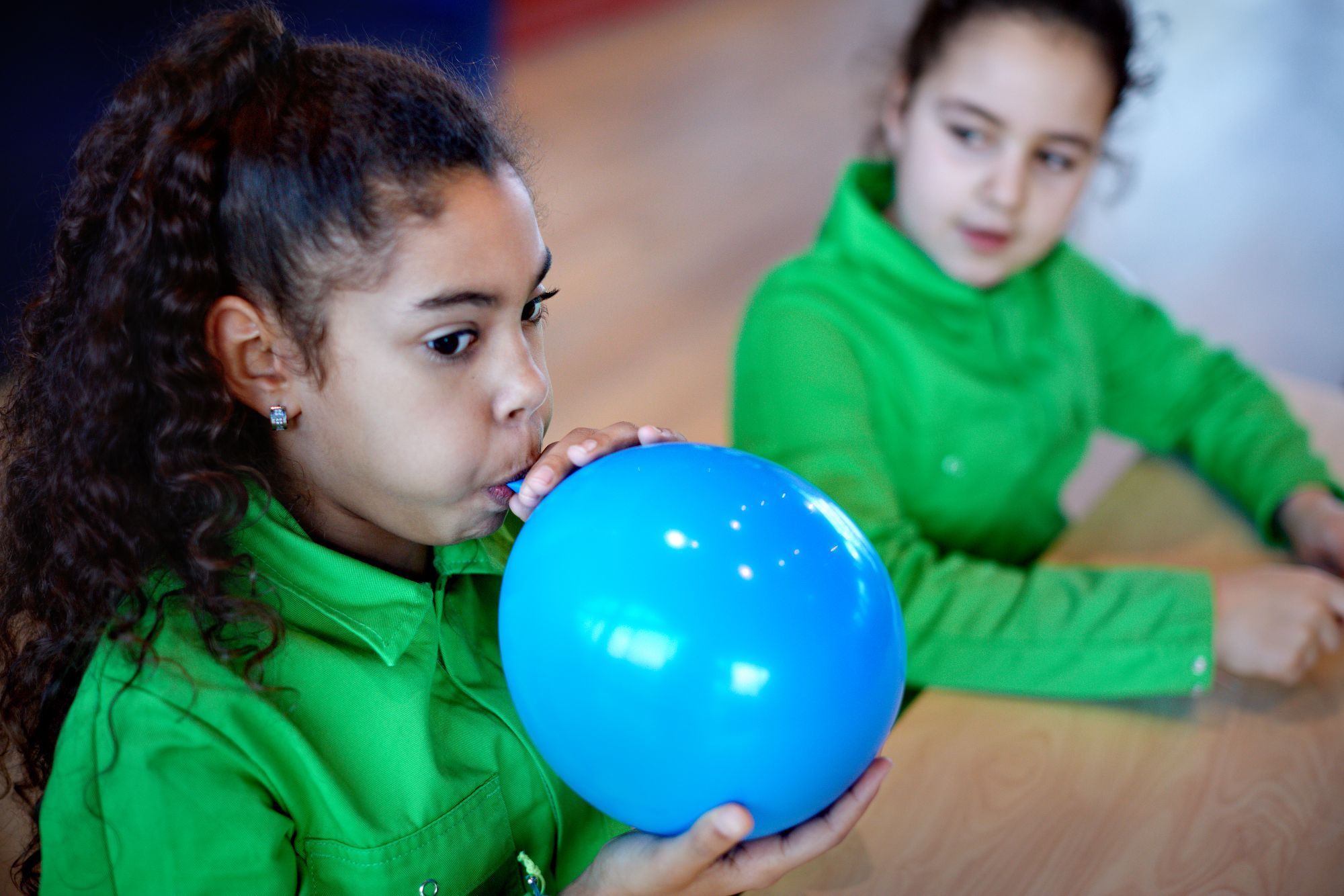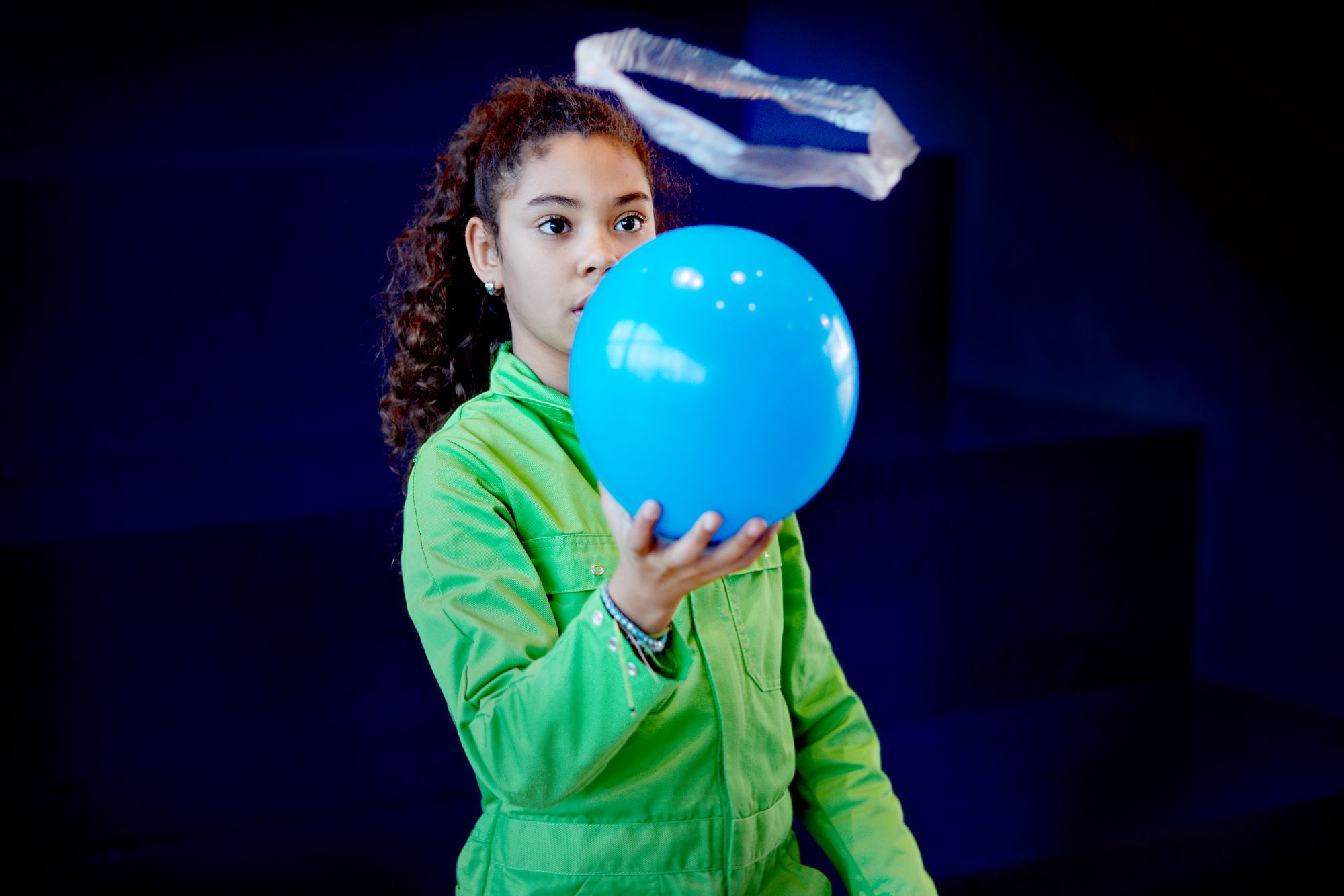By rubbing the balloon and the plastic shape on your hair, or on a woolly jumper, they both become statically charged. You can make the plastic shape float by holding the statically charged balloon underneath it. The balloon then repels the plastic, creating an upward force.