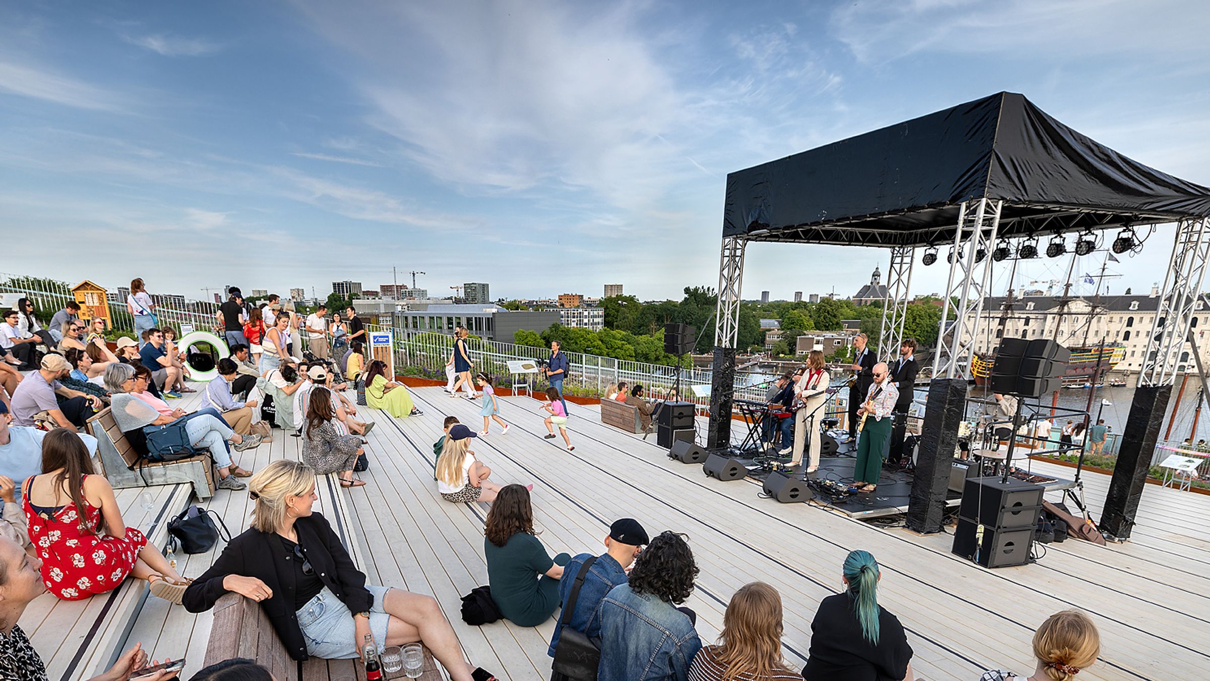Enjoy summer moods, live music, snacks and drinks and the best views of Amsterdam. Featuring indie pop by Miss Starling and danceable afrobeat by Biki Baya on Thursday 10 July.