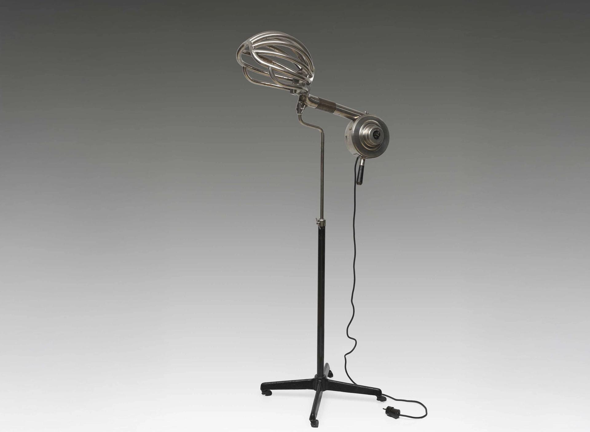 De eerste kappershaardroger, ontworpen in 1888, blies warme lucht via een buis naar een koepel rond het hoofd. In de jaren 1920 verbeterde men dit ontwerp met een luchtstroom, waardoor het haar sneller en gelijkmatiger kon drogen – een revolutie in de kapsalon!