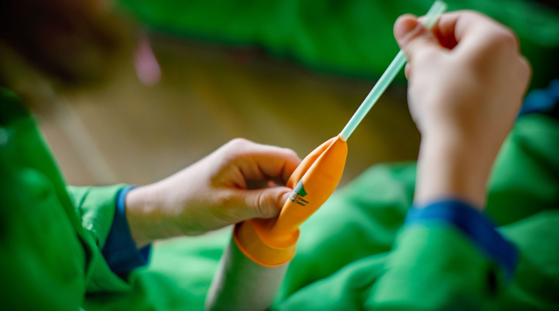 Geluid is een trilling van de lucht. Door in het rietje te blazen wordt de lucht in de wc-rol aan het trillen gebracht. Die trillende lucht laat het trommelvlies in je oor trillen, je trommelvlies geeft een seintje aan je hersenen en je hoort het geluid.