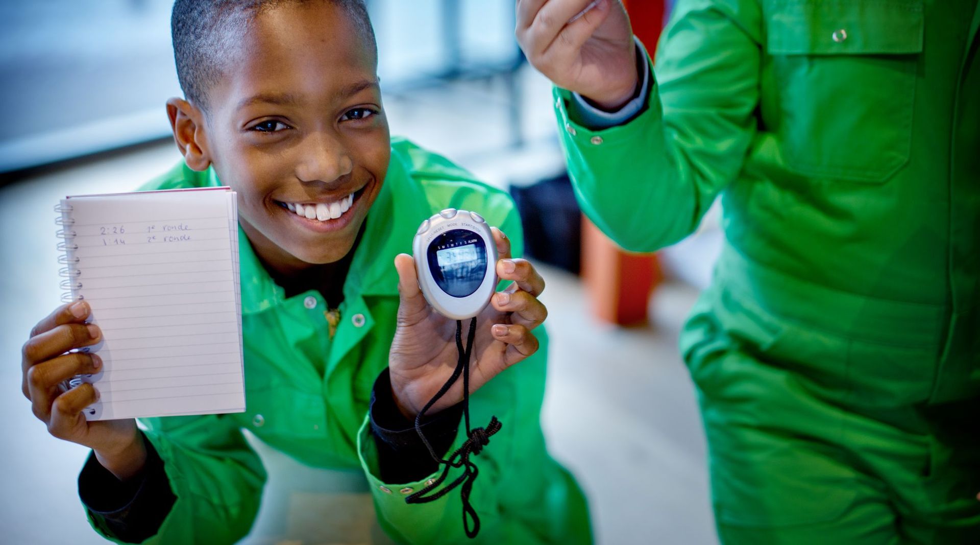 Wat je net gedaan hebt, gebeurt ook vaak in fabrieken. Hier maakt niet één persoon een heel product, maar maakt iedereen een klein stukje van het geheel.