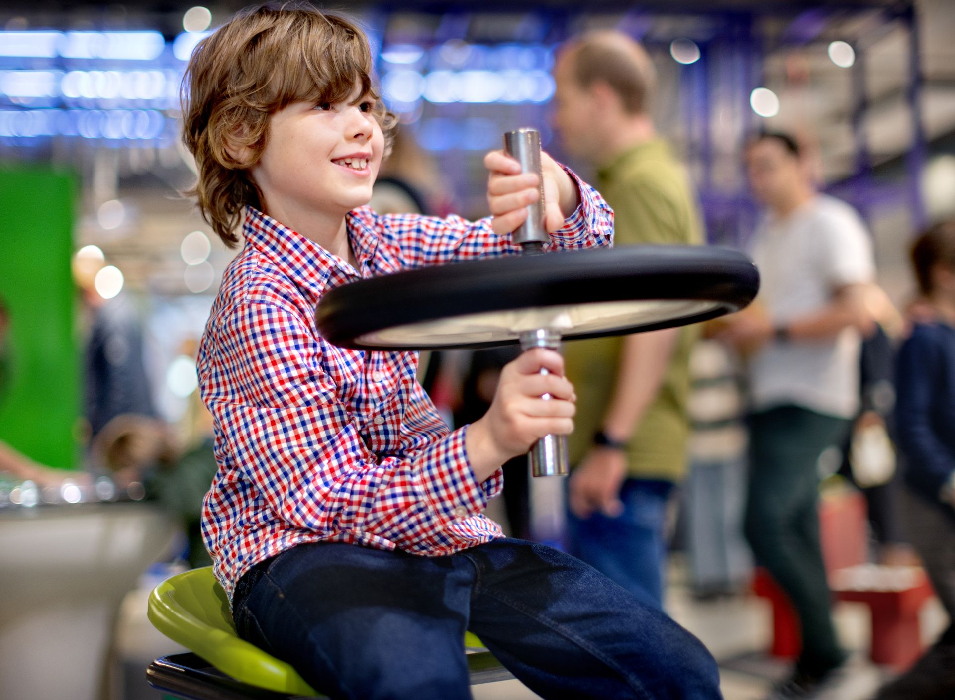 Laat je ronddraaien door dit bijzondere wiel: een gyroscoop. Ga zitten, geef het fietswiel een flinke zet en kantel het draaiende wiel. Wat er dan gebeurt? Jij gaat meedraaien. Dit komt door het gyroscoopeffect. Word je al draaierig?