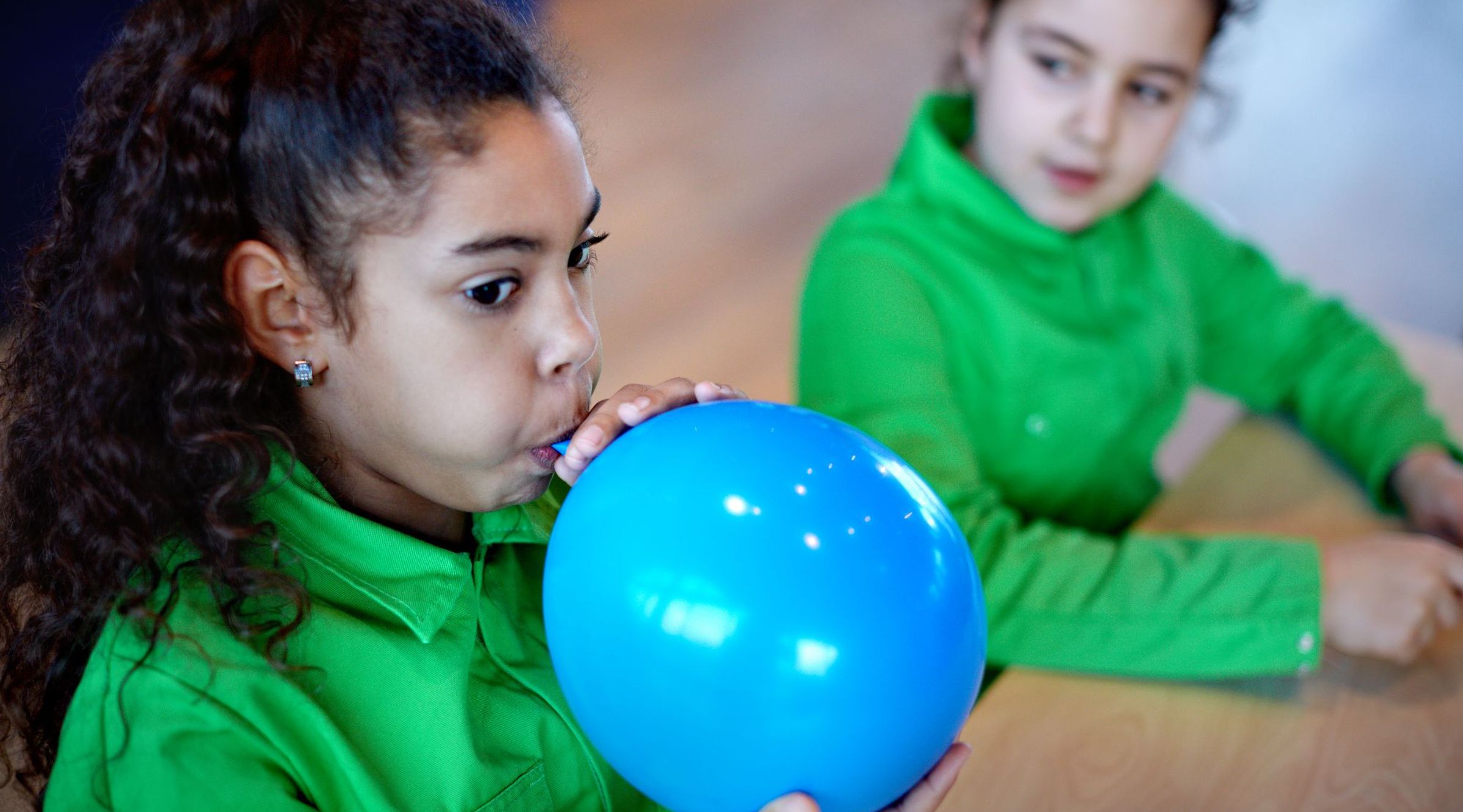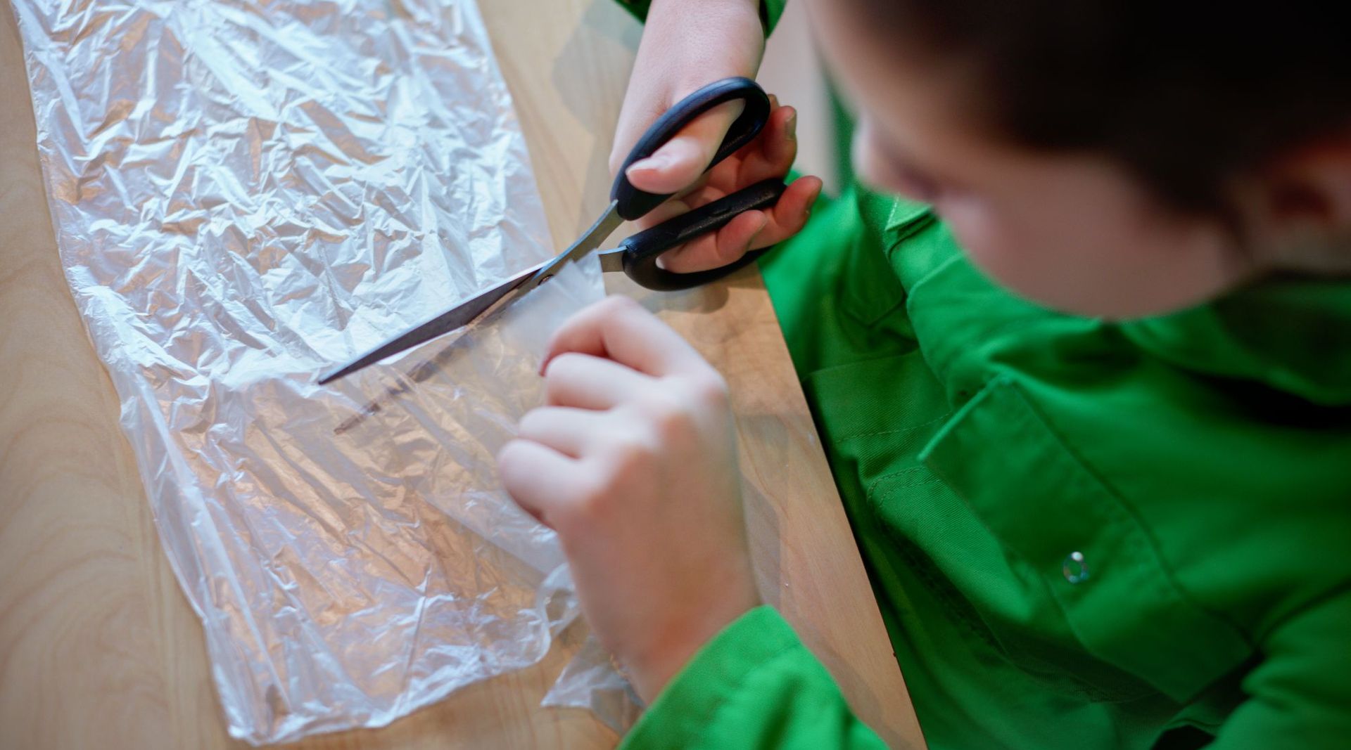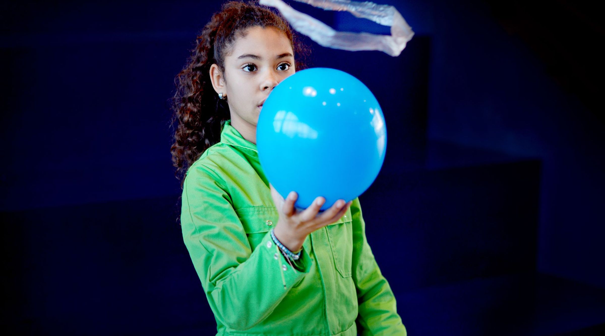 Door het wrijven langs je haar of je trui raken zowel de ballon als het stukje plastic statisch geladen. Je kunt het stukje plastic laten zweven door de (statisch geladen) ballon er onder te houden. De ballon stoot het plastic af (kracht omhoog).