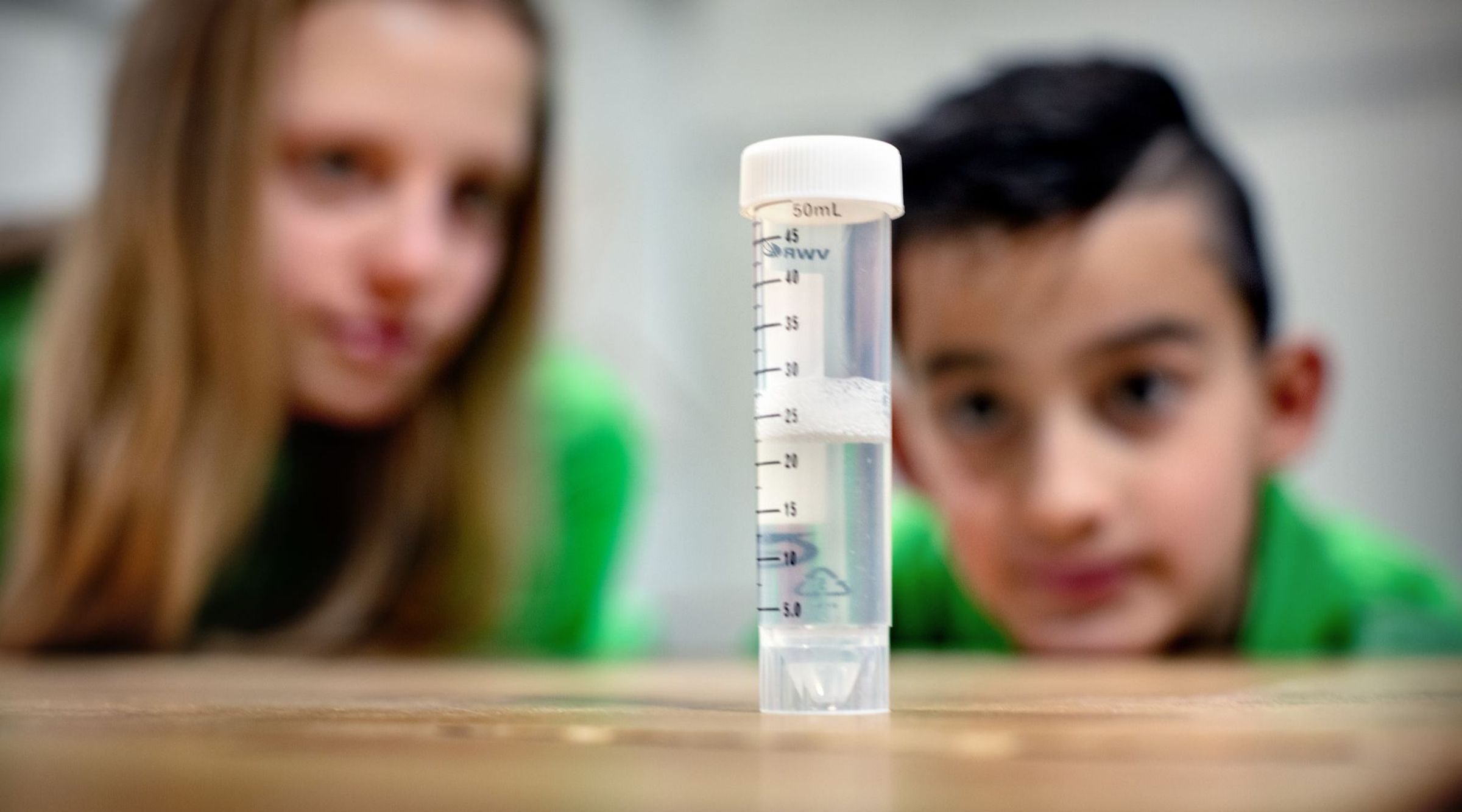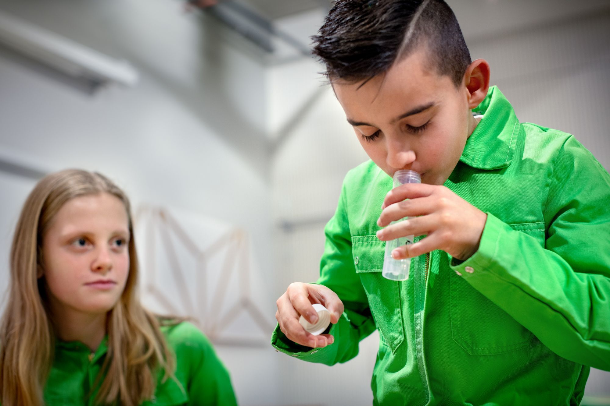 In je cellen zit DNA. Om DNA te kunnen zien, moet je eerst cellen verzamelen en stuk maken. Door twee minuten je mond te spoelen met zout water, verzamel je cellen uit je wangslijmvlies. In die cellen zit jouw DNA.