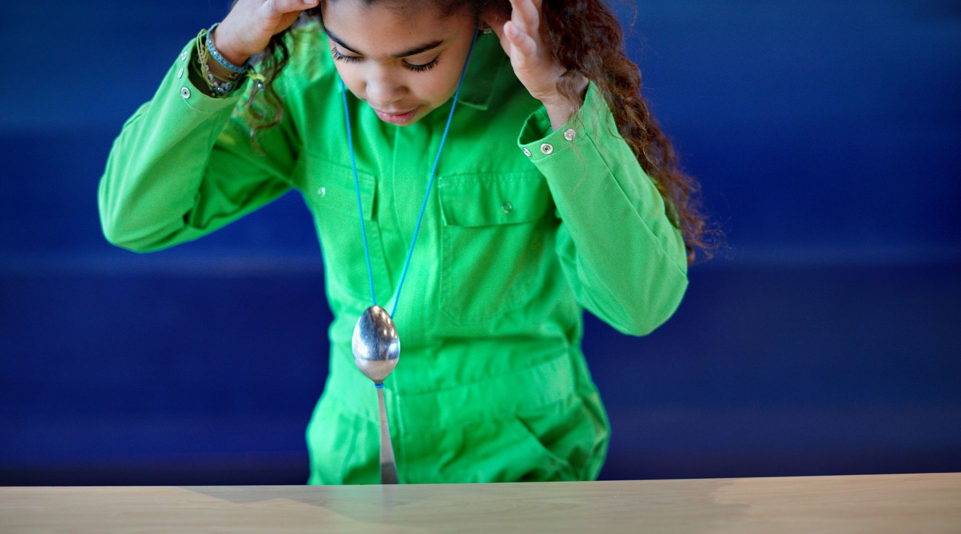 Als je met een lepel in je hand tegen de tafelrand tikt, hoor je wel een geluid. Maar dat is niet zo hard. De lepel trilt even, maar de trilling wordt snel gedempt omdat je de lepel vasthoudt met je hand. Als je een lepel aan een touwtje knoopt, dan gaat het anders.