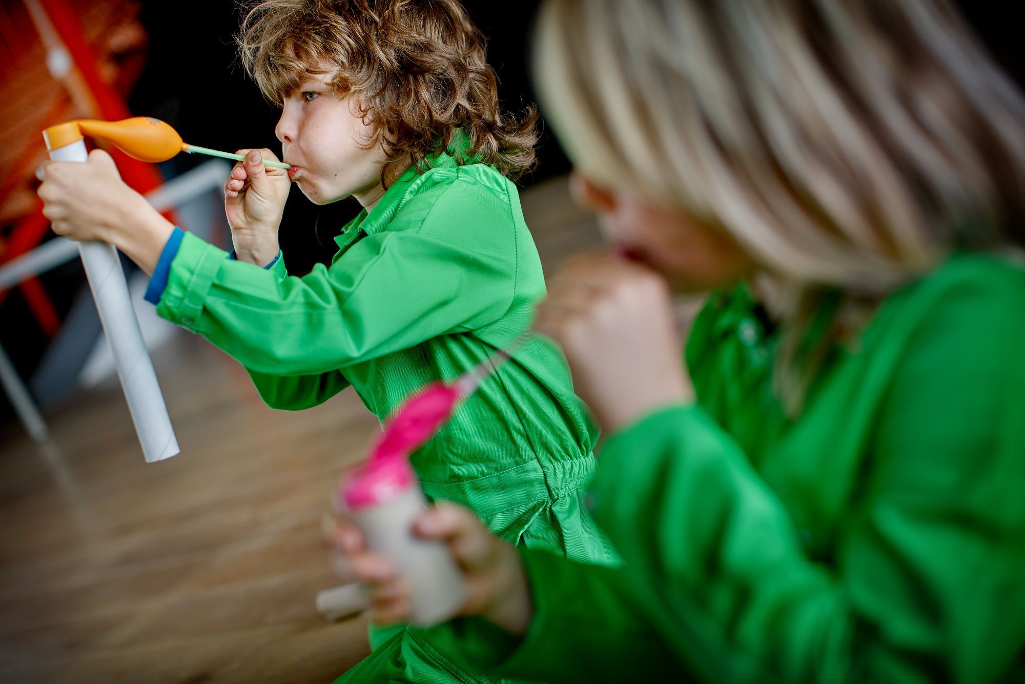 Geluid is een trilling van de lucht. Door in het rietje te blazen wordt de lucht in de wc-rol aan het trillen gebracht. Die trillende lucht laat het trommelvlies in je oor trillen, je trommelvlies geeft een seintje aan je hersenen en je hoort het geluid.