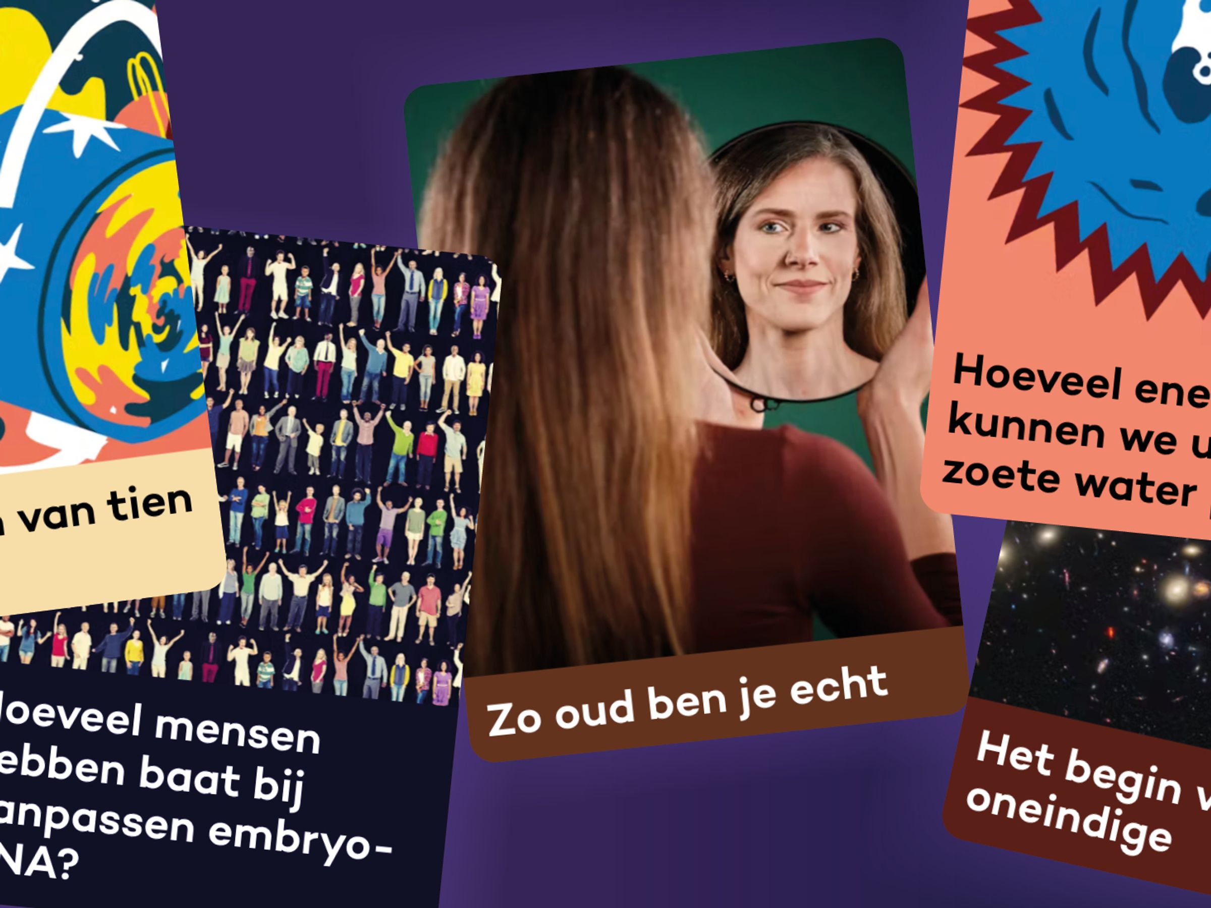 In het nieuwe ontwerp scroll je horizontaal door de thema’s en ontdek je niet alleen uitgelichte artikelen maar ook gegroepeerde publicaties. Zo’n groepje kan bijvoorbeeld een serie artikelen zijn over één onderwerp. “Vaak zoeken we daarin naar oplossingen, bijvoorbeeld voor de woningcrisis of hoe je een verantwoord internet van de toekomst bouwt”, aldus Robert Visscher, hoofdredacteur NEMO Kennislink. “In het nieuwe design is deze samenhang duidelijk zichtbaar en krijg jij als lezer hopelijk de smaak te pakken, door meerdere stukken te lezen. Soms gaat een serie ook over een gedachte-experiment. Zo draait Heel Nederland Vegan om de vraag of we iedereen in ons land kunnen voeden als we alleen nog maar veganistisch eten.”