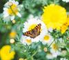 Rond bloeiende planten is het op dit moment vaak drukker dan elders op het dak. Vliegende insecten zoals vlinders, zweefvliegen, of bijen verzamelen zich rondom bloemen.