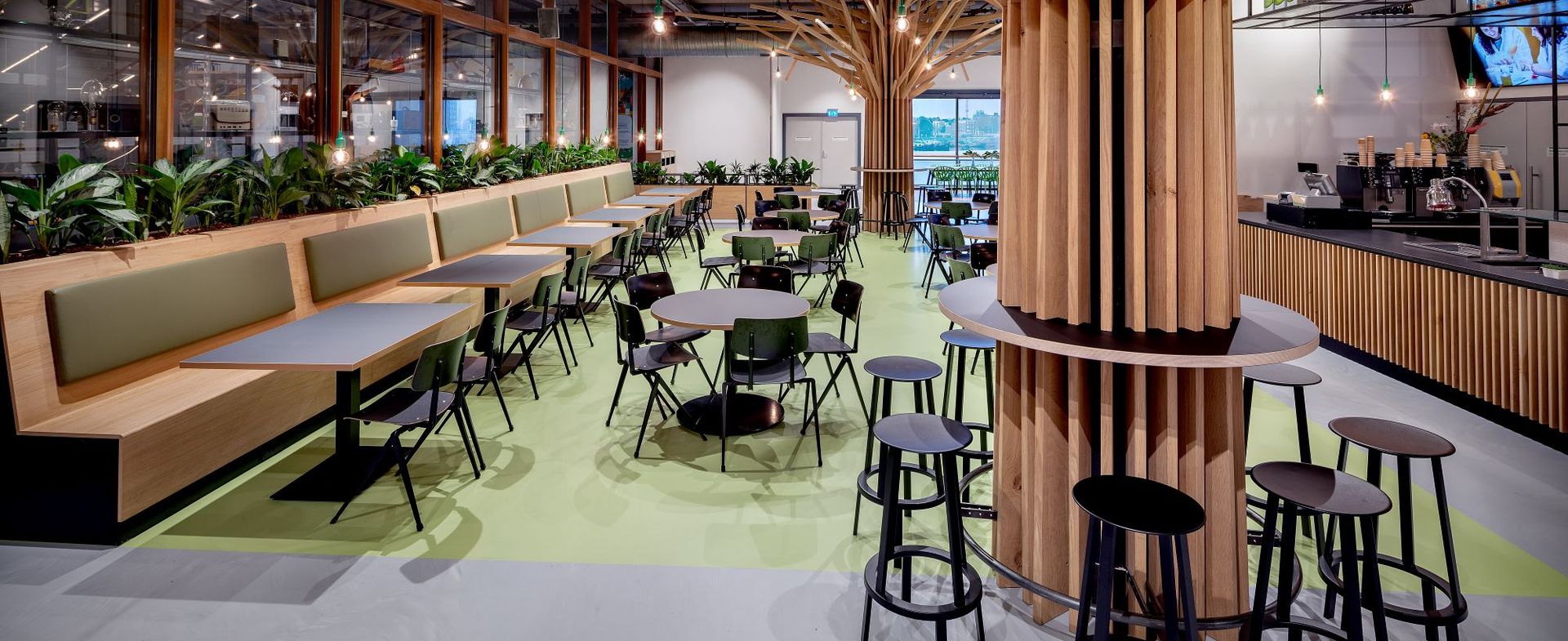 Het Museumcafé ligt direct naast het Auditorium en Theater en leent zich perfect voor een informele borrel of een buffet. In deze afzonderlijke, rustige ruimte, zit je toch middenin de dynamiek van NEMO. Het houten meubilair en de natuurlijke tinten geven warmte aan het stoere, industriële interieur van het museum.
